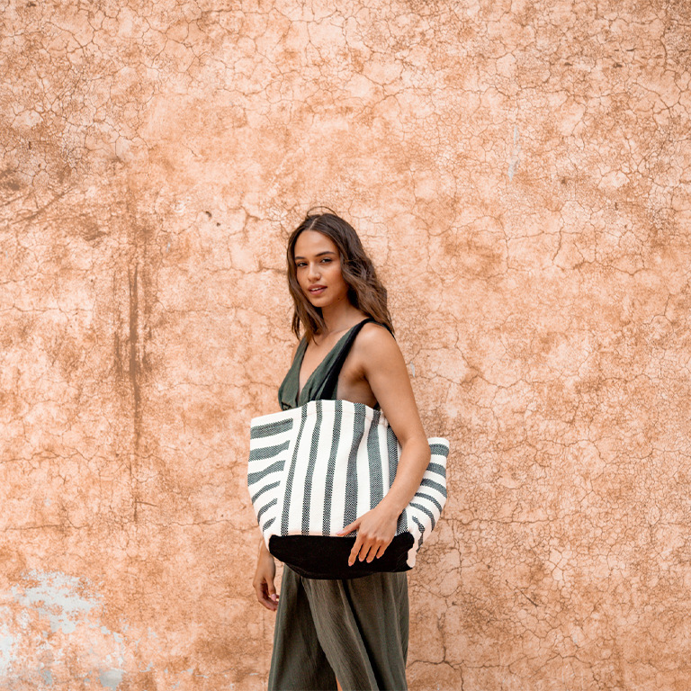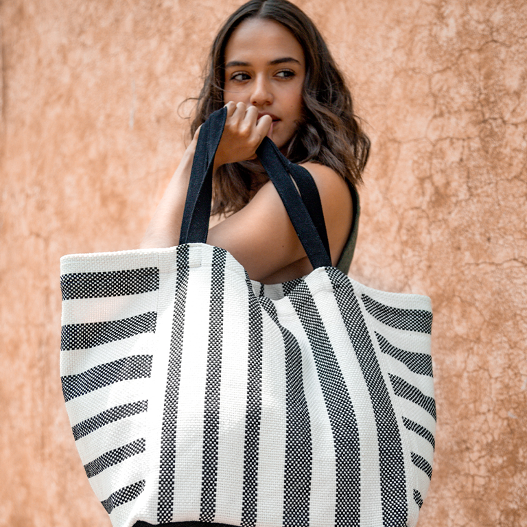 Oversized, foldable, and machine washable. Our stylish and spacious Blanca tote is unlined with durable seams. This soft and spacious carryall stows your goods for the beach or market, and folds away neatly when not in use.